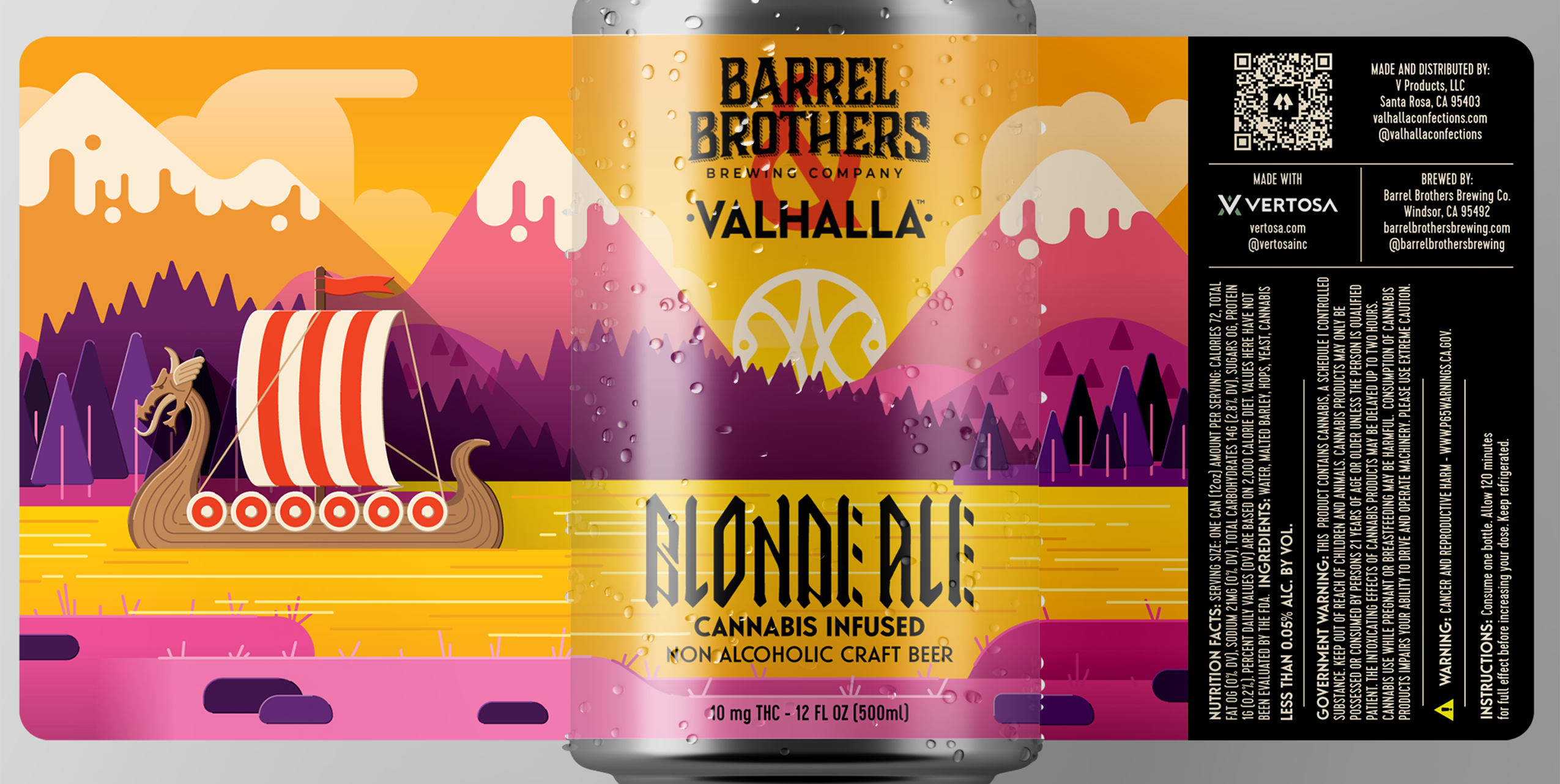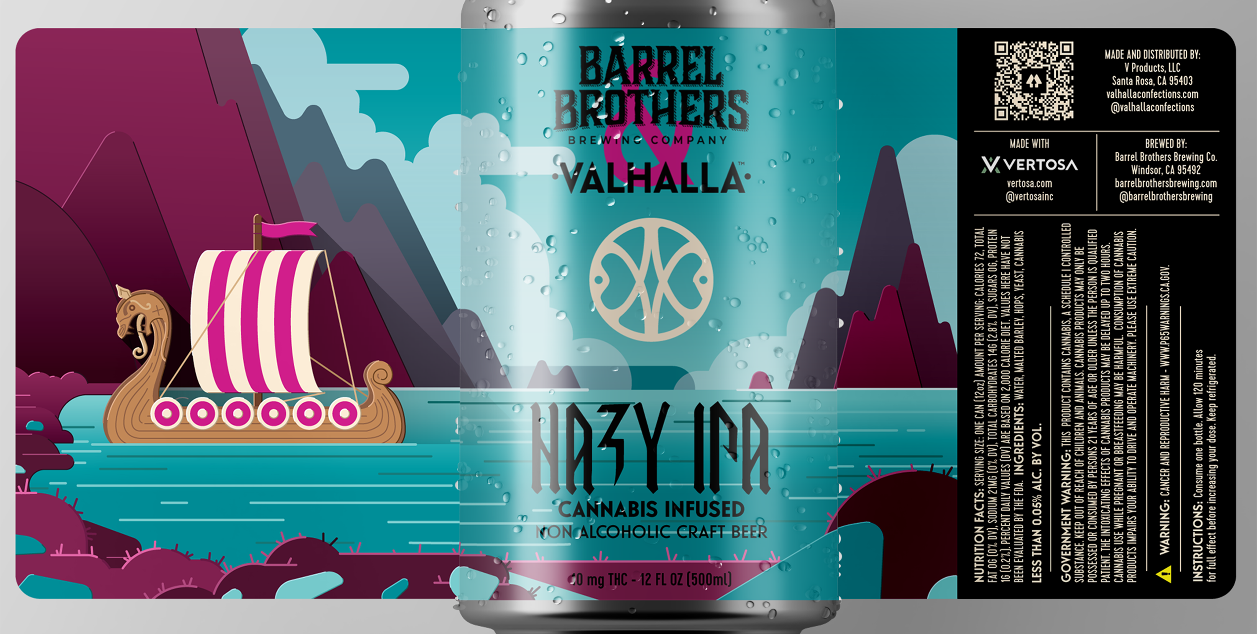 While it may seem odd at first, a new way to imbibe is taking the stage; infused beverages. Focusing on the more hoppy leaning of some cannabinoids, Valhalla and the Barrel Brothers have teamed up to create two drafts of the Valhalla infused IPA. My job was to create a more 'craft beer' style label, and moving away form our more simplistic beginings.
