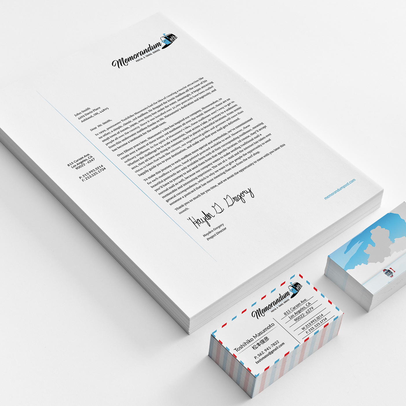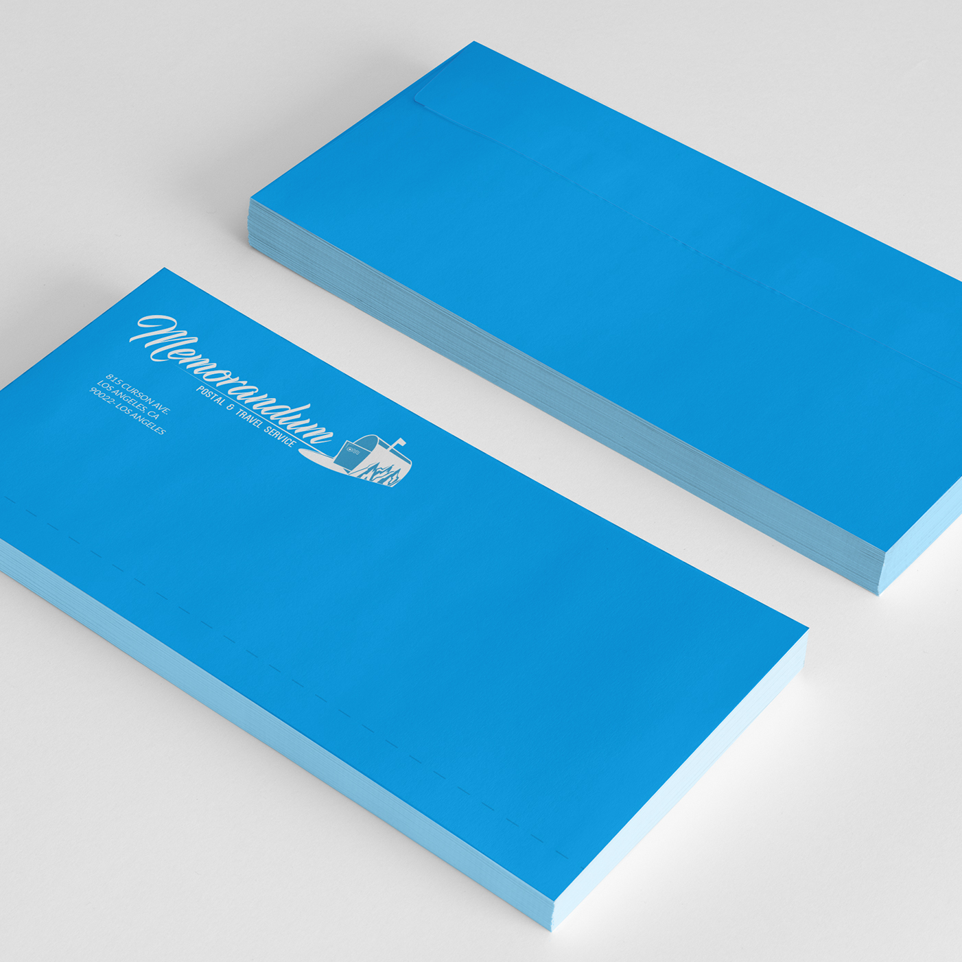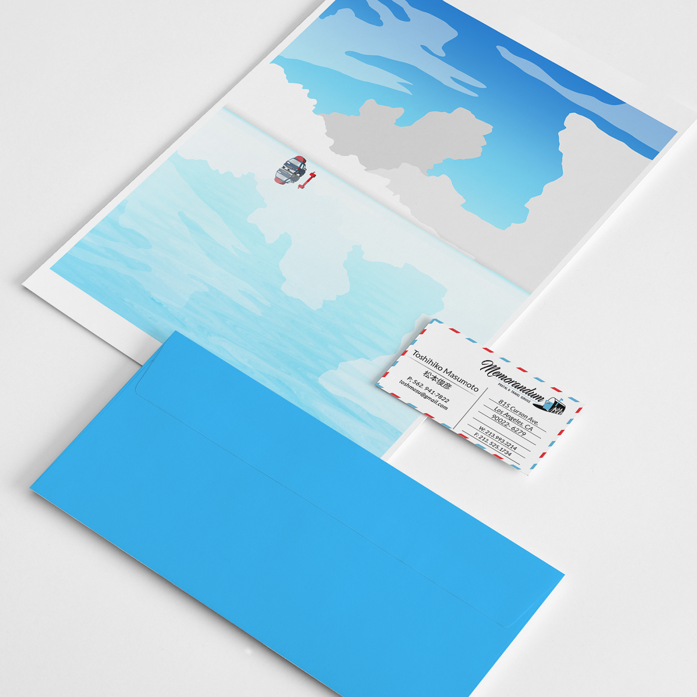 Memorandum is a company that specializes in sending postcards from their (scenic and often bizarrely place) iconic red mailboxes, inspired by the work of Japanese postman Toshihiko Masumoto. The letterhead designs are simple, clean, and offer a different hand-drawn illustration for each set.
